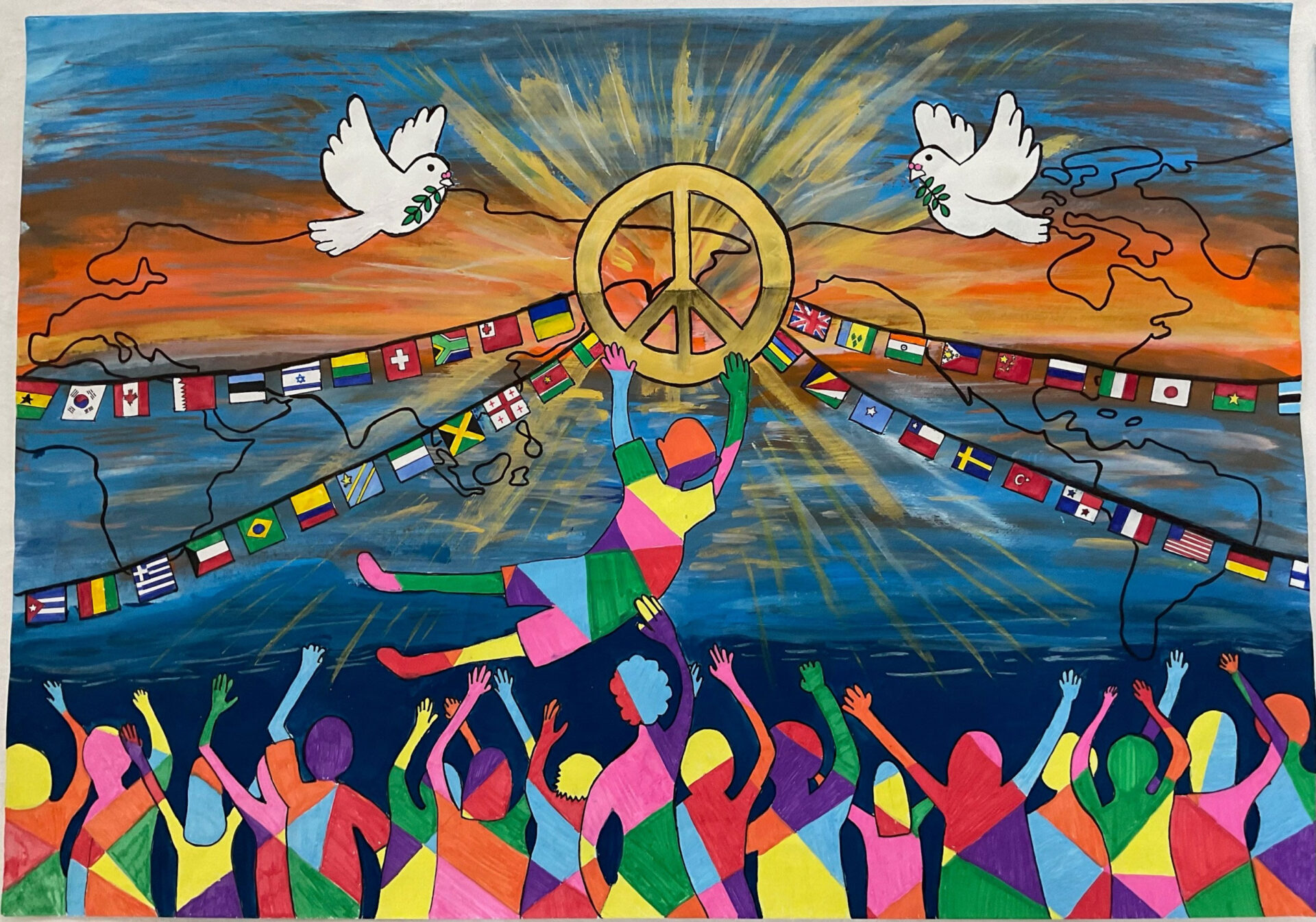 D地区矢吹 和音さん (二本松イングリッシュスクール1年)の作品を最優秀作品と決定。依って332複合地区より国際平和ポスターコンテスト参加作品として国際協会へ出展