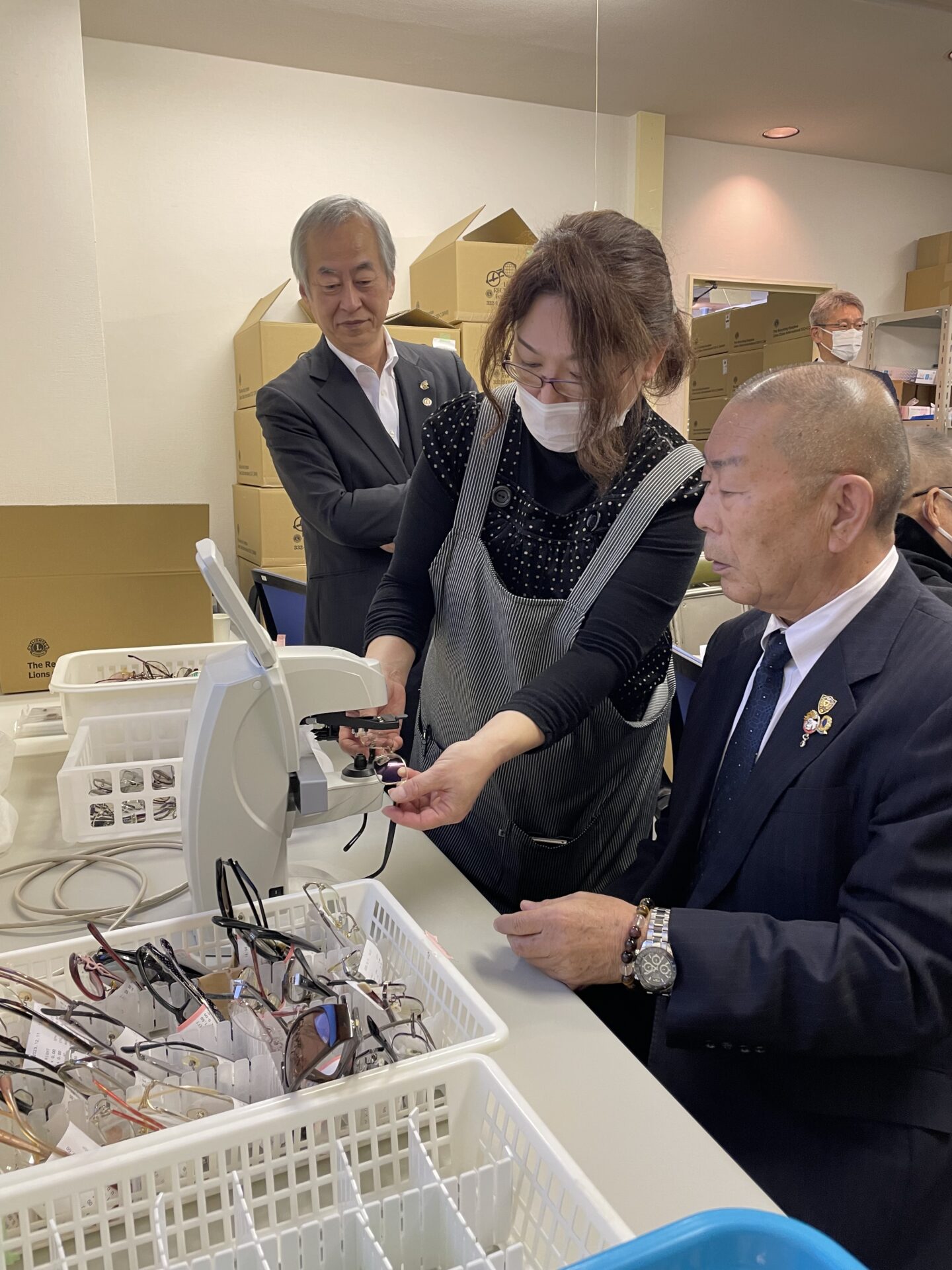 332-C地区眼鏡リサイクルセンターにて332複合地区第3回GSTコーディネーター会議を開催し、会議後は施設に届いた眼鏡の洗浄・測定・梱包までの説明をお聞きしました。