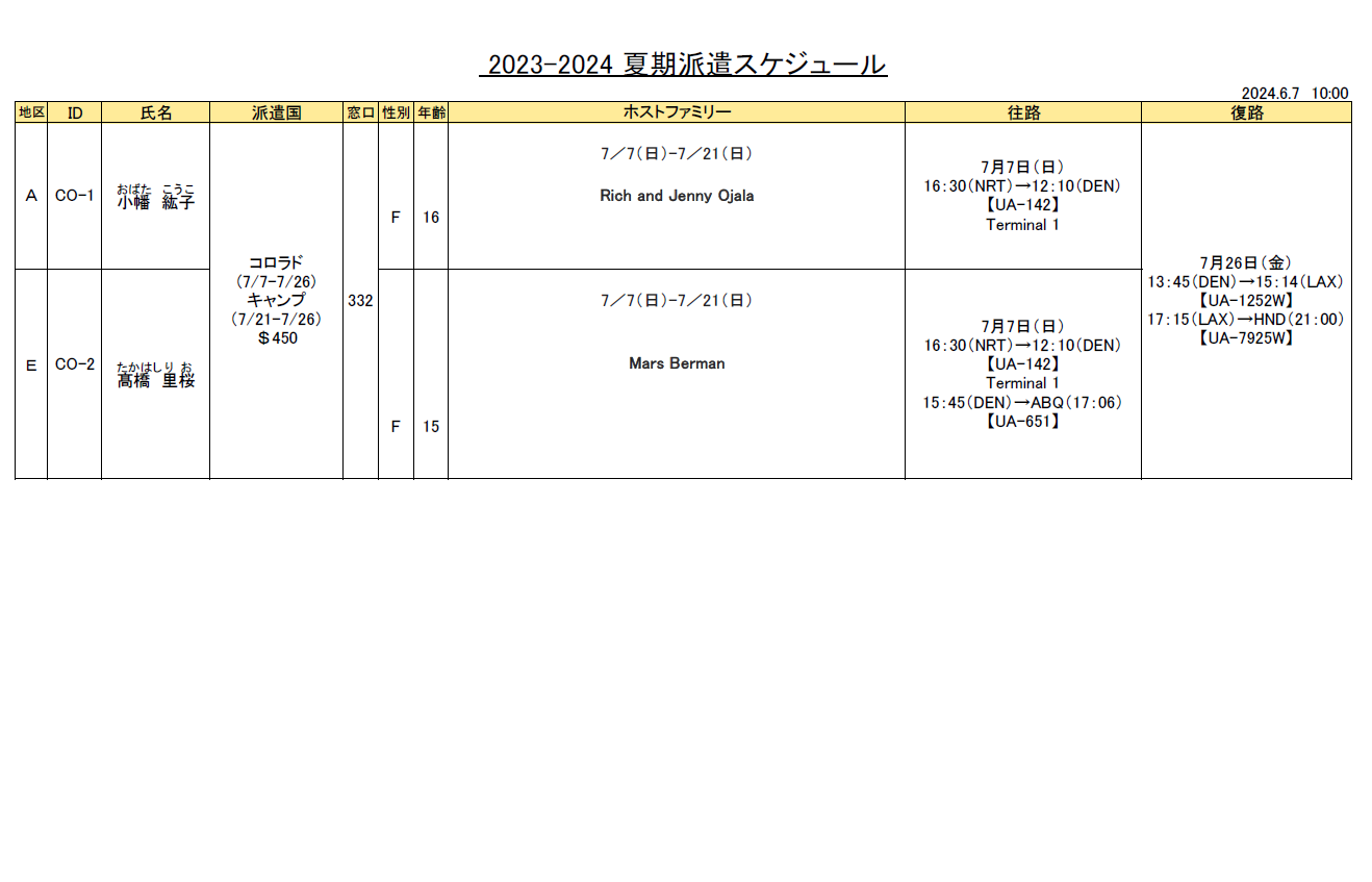 YCE夏期来日生および派遣生スケジュールとレポートを公開